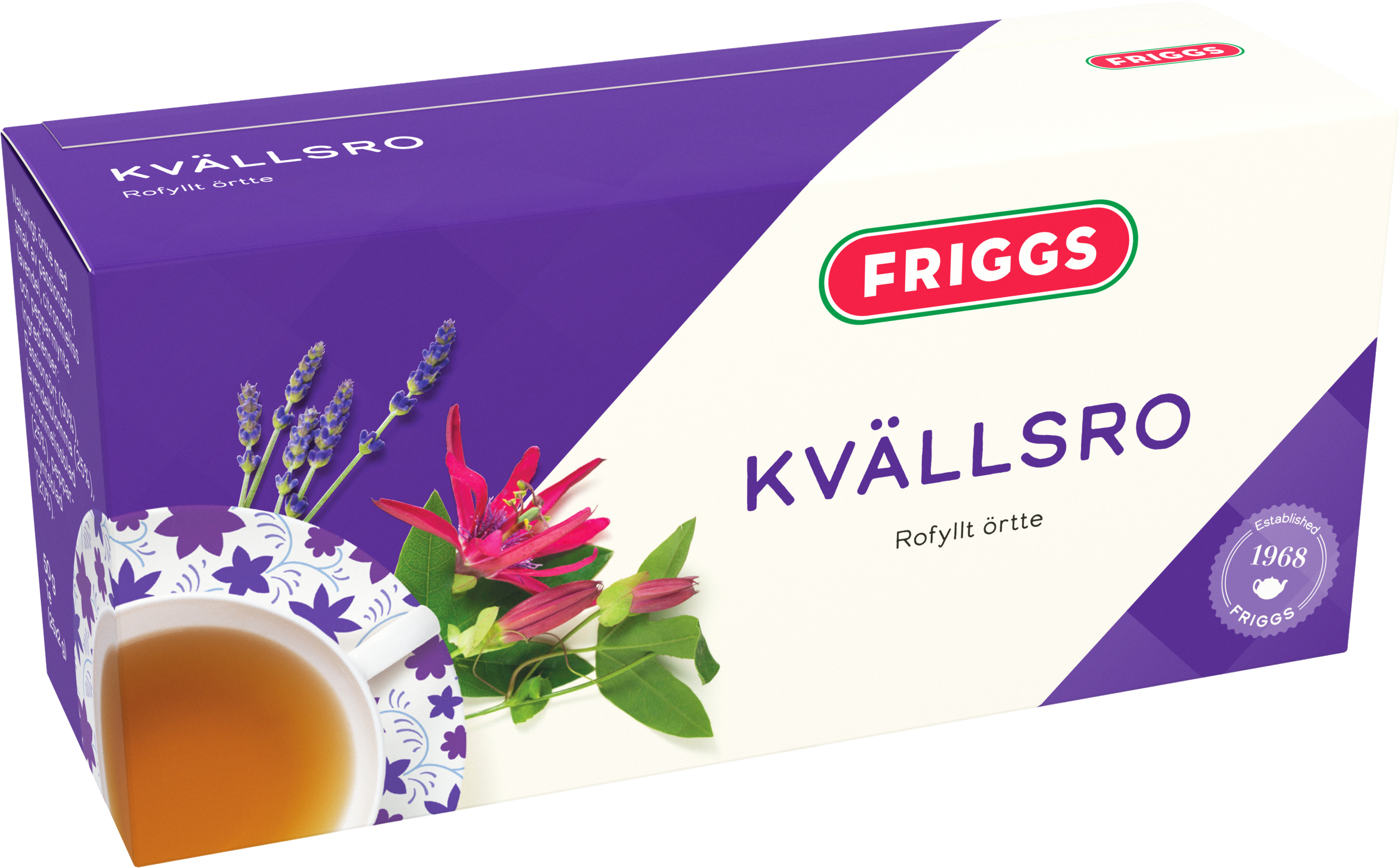Friggs Kvällsro Te är ett naturligt örtte som ger en god avslutning på dagen med utvalda örter och kryddor från naturen. Örtte är naturligt koffeinfritt och passar bra att dricka på kvällen.