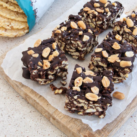 Smarriga chokladrutor med jordnötssmör. Toppade med flingsalt och jordnötter. Låt fantasin flöda! Välj din favoritchoklad, byt ut nötsmöret mot en klick kokosolja, eller varför inte testa med Friggs Majskakor Popcorn?